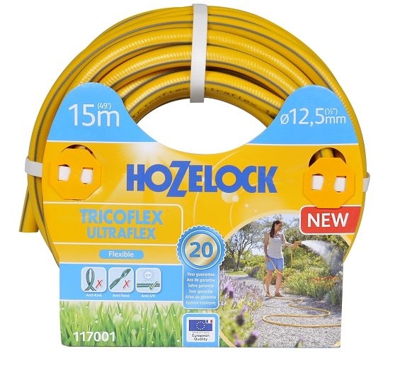 To εύκαμπτο και ανθεκτικό λάστιχο Ultraflex 15m της Hozelock, δεν τσακίζει, δε μπερδεύεται και είναι κατάλληλο για πόσιμο νερό.