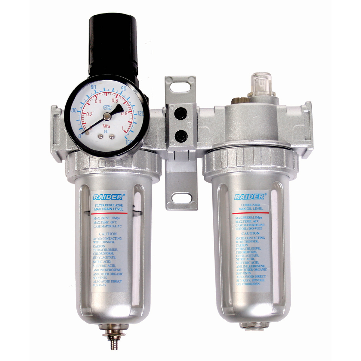 Το φίλτρο αέρα με ελαιοντήρα RAIDER RD-AF02 είναι σχεδιασμένο για να καθαρίζει τον αέρα από υγρασία και να παρέχει καθαρό αέρα στο σύστημα παροχής αέρα. Με μέγιστη πίεση λειτουργίας 0.05|1Mpa, είναι κατάλληλο για διάφορες εφαρμογές.