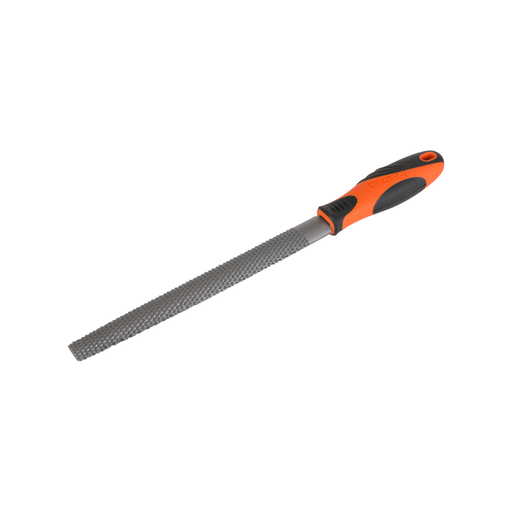 Ημιστρόγγυλη ράσπα για λείανση των σιδηρούχων και μη σιδηρούχων μετάλλων. Κατασκευασμένη από θερμικά επεξεργασμένο ατσάλι για μέγιστη αντοχή και απόδοση. Διαθέτει εργονομική λαβή από ειδικό πλαστικό με αντιολισθητική δράση για περισσότερη άνεση κατά τη χρήση.