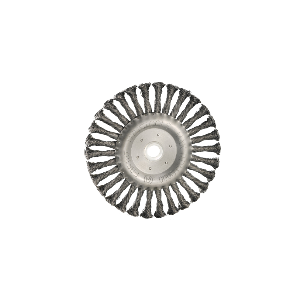 Συρματόβουρτσα στρογγυλή ορειχάλκινη για εφαρμογή σε γωνιακούς τροχούς. Ιδανικό για απομάκρυνση πληθώρας συστατικών από επιφάνειες μετάλλου.