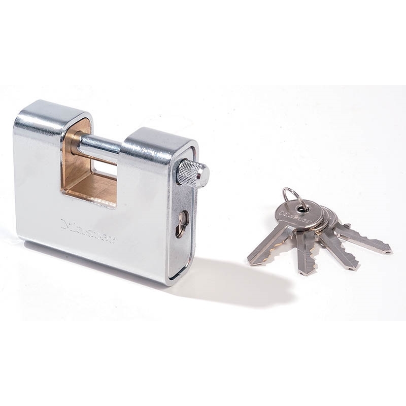 Το λουκέτο τάκος ύψιστης ασφαλείας της Masterlock διαθέτει σώμα ψευδαργύρου πλάτους 90 mm για αντοχή στις καιρικές συνθήκες και περιβάλλεται από ενισχυμένο χάλυβα για μέγιστη αξιοπιστία. Ο πλήρως καλυμμένος σχεδιασμός ελαχιστοποιεί την έκθεση του λαιμού και προστατεύει από επιθέσεις με κόφτη. Ο λαιμός διαμέτρου 12mm έχει μήκος 18mm και είναι κατασκευασμένος από ενισχυμένο ατσάλι, προσφέροντας ισχυρή αντοχή στην κοπή και το πριόνισμα. Ο κύλινδρος 5 ακίδων αποτρέπει την κλοπή και οι διπλοί μοχλοί ασφάλισης αποτρέπουν επιθέσεις από σφυρί. Το λουκέτο έρχεται με 4 κλειδιά για ευκολία.