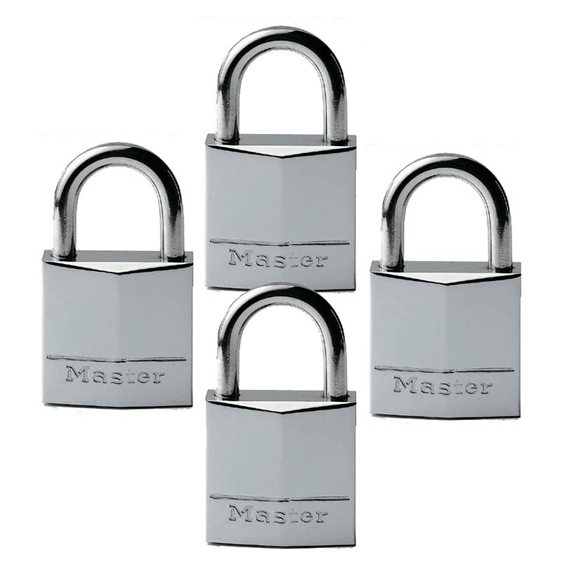 Σετ από 4 λουκέτα. Το κάθε λουκέτο 20mm με λαιμό Inox της Masterlock είναι ανθεκτικό στις καιρικές συνθήκες, διαθέτει ένα επινικελωμένο σώμα από συμπαγή ορείχαλκο πλάτους 20 mm για μέγιστη αντοχή, αξιοπιστία και αντοχή στη διάβρωση. Ο λαιμός διαμέτρου 4 mm έχει μήκος 12 mm και είναι κατασκευασμένος από επινικελωμένο ατσάλι, προσφέροντας αντοχή στις σκληρές εξωτερικές συνθήκες.