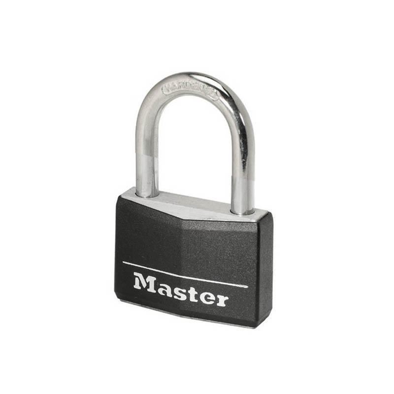 Το λουκέτο με κάλυμμα προστασίας και ασορτί κλειδιά της MASTERLOCK διαθέτει ένα καλυμμένο σώμα κλειδαριάς από συμπαγές αλουμίνιο πλάτους 30mm που αποτρέπει τις γρατσουνιές και αντιστέκεται στη διάβρωση. Ο λαιμός διαμέτρου 5mm έχει μήκος 18mm και είναι κατασκευασμένος από χάλυβα, προσφέροντας αντοχή στην κοπή και το πριόνισμα.