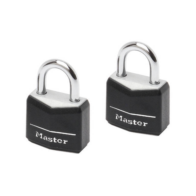 Σετ από 2 λουκέτα με κάλυμμα προστασίας και ασορτί κλειδιά της MASTERLOCK. Το λουκέτο διαθέτει ένα καλυμμένο σώμα κλειδαριάς από συμπαγές αλουμίνιο πλάτους 20mm που αποτρέπει τις γρατσουνιές και αντιστέκεται στη διάβρωση. Ο λαιμός διαμέτρου 3mm έχει μήκος 11mm και είναι κατασκευασμένος από χάλυβα, προσφέροντας αντοχή στην κοπή και το πριόνισμα.