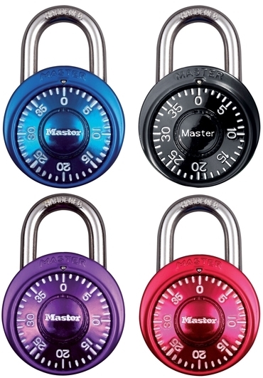 Λουκέτο μίνι 38mm σταθερού συνδυασμού MASTERLOCK, με λαιμό και σώμα από ατσάλι. Ιδανικό για τις σχολικές τσάντες. Διατίθεται σε 4 μοντέρνα χρώματα.