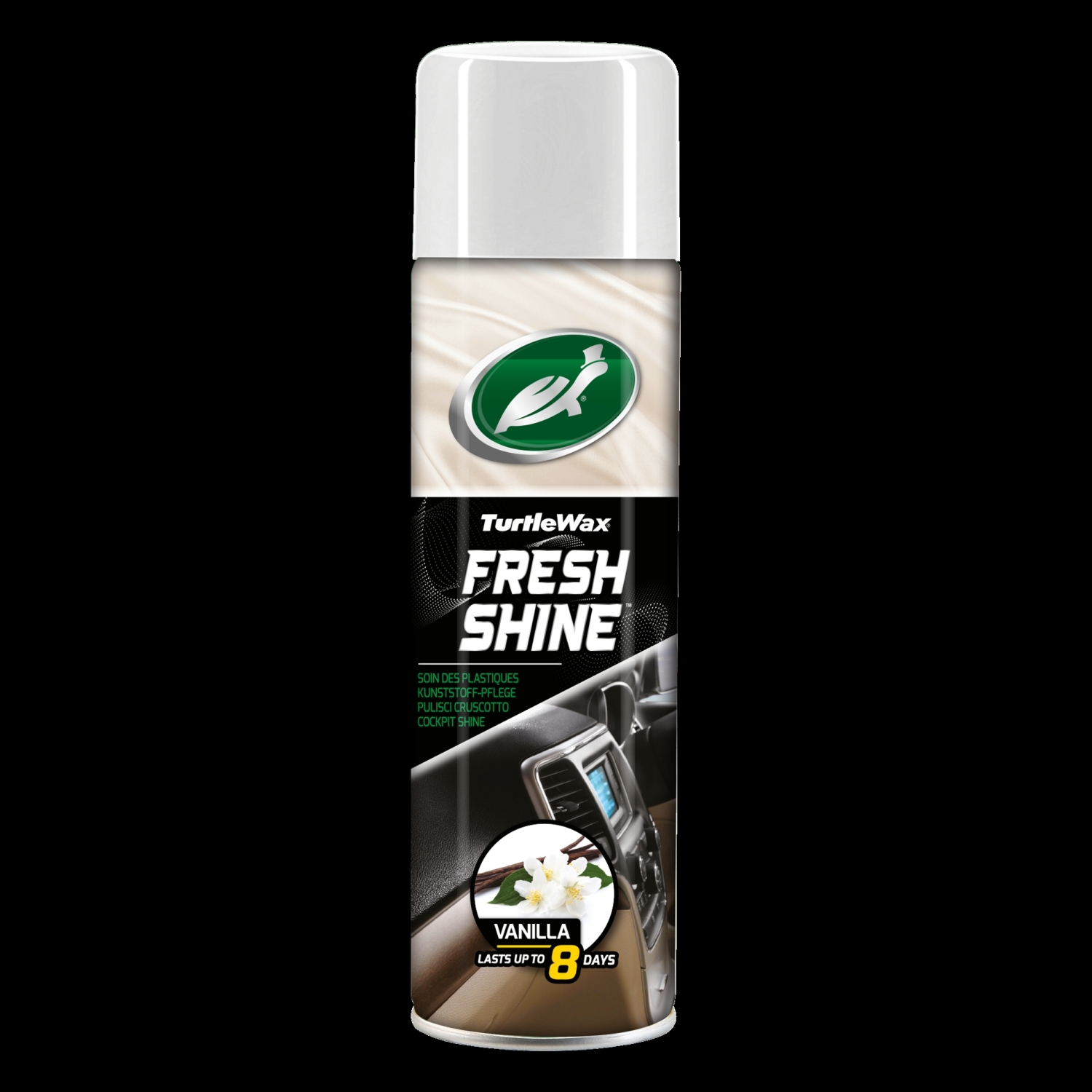 Γυαλιστικό για ταμπλό Fresh Shine Vanilla 500ml, TURTLE WAX. Το γυαλιστικό Fresh shine σε aerosol, περιέχει σιλικόνη η οποία εισχωρεί στην επιφάνεια του ταμπλό ώστε να το προστατεύει και να το γυαλίζει. Αφήνει ευχάριστο άρωμα που διαρκεί έως και 8 ημέρες.