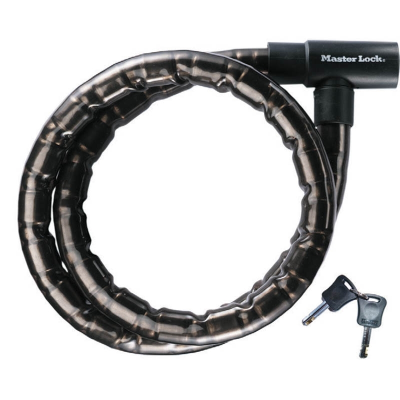 Η κλειδαριά ασφαλείας τύπου «Φίδι» για μοτοσυκλέτες της Masterlock έχει μήκος 1,2 m και διαθέτει ενισχυμένο χάλυβα διαμέτρου 22 mm για μέγιστη αντοχή και ευελιξία. Η προστατευτική επίστρωση βινυλίου προστατεύει από γρατσουνιές. Ο κύλινδρική κλειδαριά δίσκου εμποδίζει τη κλοπή.