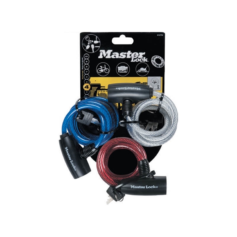 Οι κλειδαριές ποδηλάτου με συρματόσχοινο 180cm της MASTERLOCK διαθέτουν στριφτό χάλυβα διαμέτρου 8mm για μέγιστη αντοχή και ευελιξία. Η προστατευτική επίστρωση βινυλίου προστατεύει από γρατσουνιές. Ο ενσωματωμένος μηχανισμός ασφάλισης με κλείδωμα του πίρου παρέχει ανώτερη αντίσταση στην κλοπή.