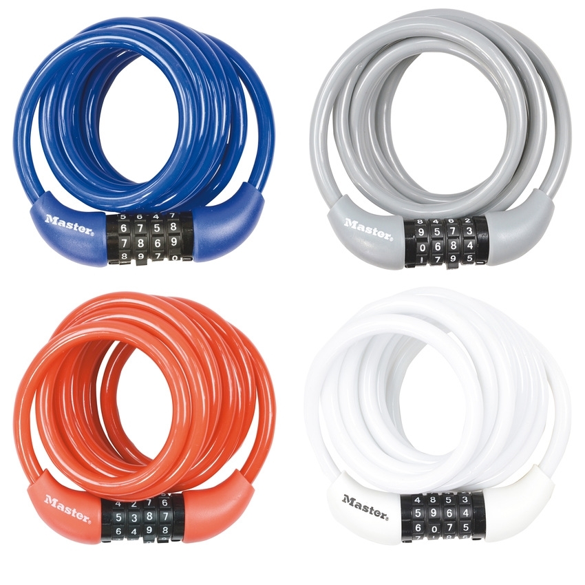 Το λουκέτο συνδυασμού με συρματόσχοινο ποδηλάτου της Masterlock έχει μήκος 1,8 m και διαθέτει στριφτό χάλυβα διαμέτρου 8 mm για μέγιστη αντοχή και ευελιξία. Η προστατευτική επίστρωση βινυλίου προστατεύει από γρατσουνιές. Ο συνδυασμός ασφάλειας 4 ψηφίων προσφέρει άνεση χωρίς κλειδί.