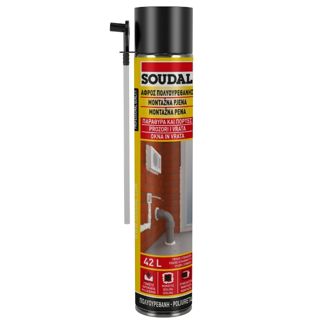 Διογκούμενος αφρός ενός συστατικού χειρός 750ml της Soudal, με υψηλή απόδοση διόγκωσης έως και 42lt.