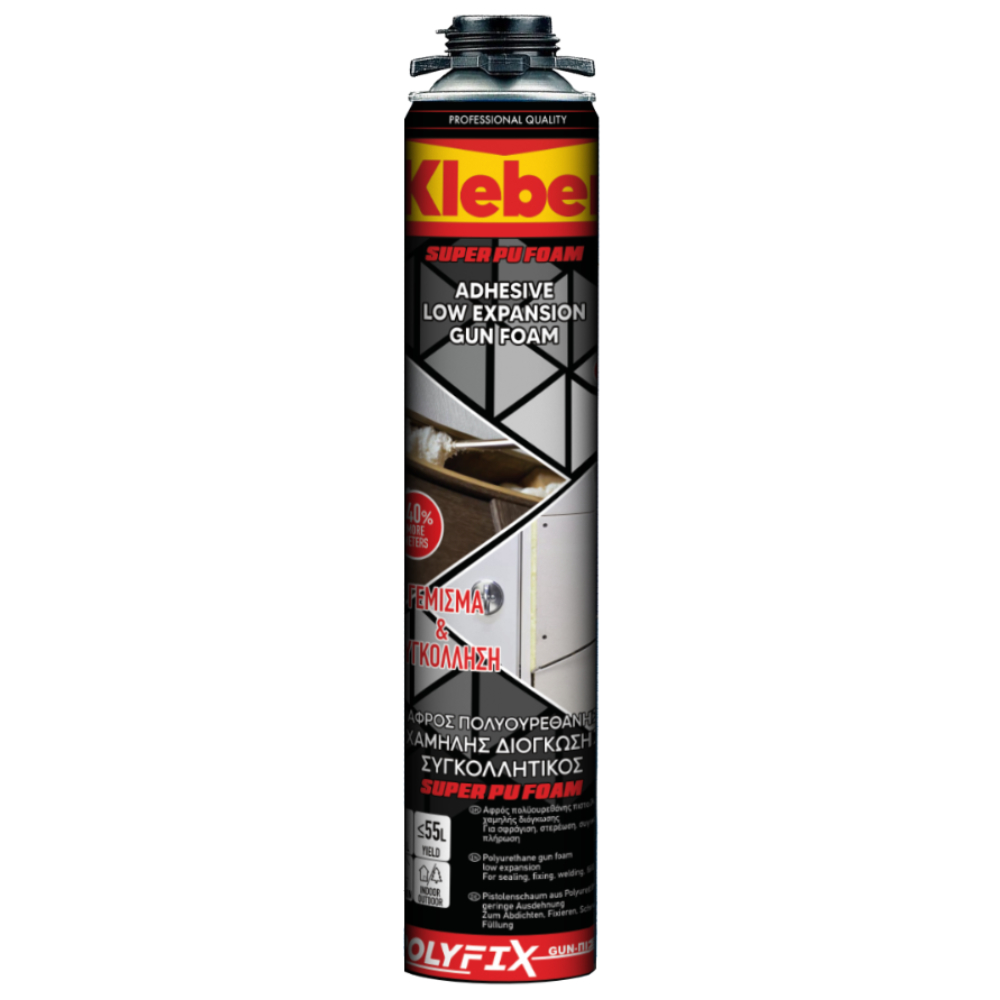 Ο Kleber Polyfix Super PU 1076 είναι ένας πιστολιού αφρός πολυουρεθάνης χαμηλής διόγκωσης (B3), σε συσκευασία 750 ml, κατάλληλος για εφαρμογές στεγανοποίησης, μόνωσης και συναρμολόγησης. Ο ελεγχόμενος μηχανισμός διόγκωσης αποτρέπει υπερβολική επέκταση, καθιστώντας τον ιδανικό για εφαρμογή σε αρμούς γύρω από κουφώματα, πόρτες, παράθυρα και θερμομονώσεις.