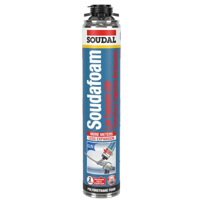 Υψηλής ποιότητας αφρός πολυουρεθάνης πιστολιού ενός συστατικού χαμηλής διόγκωσης της Soudal.