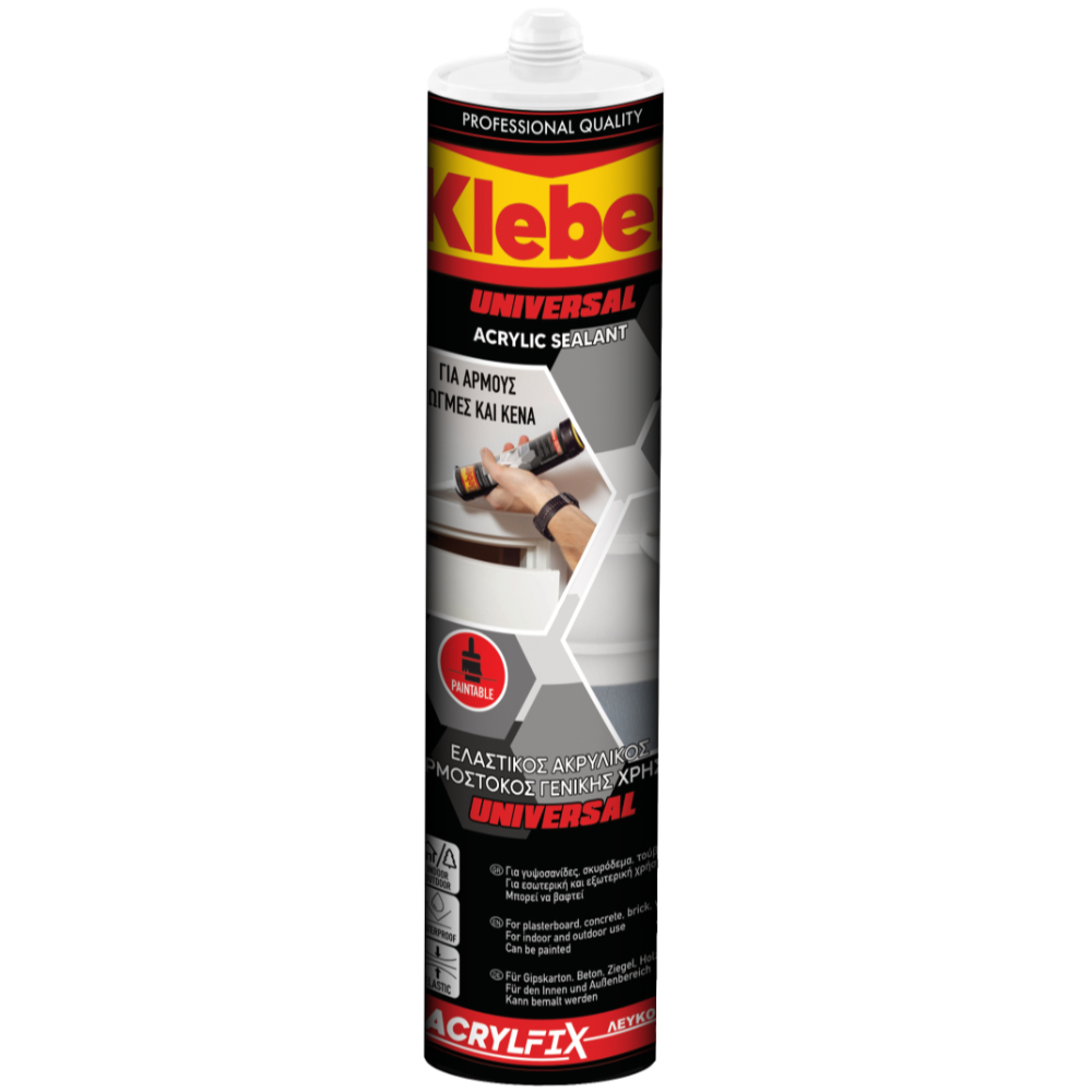 Ο Kleber Acrylfix Ελαστικός Ακρυλικός Αρμόστοκος 450 gr (Universal 1069) είναι premium προϊόν ακρυλικής βάσης, σχεδιασμένο για γενικές εφαρμογές στεγανοποίησης σε εσωτερικούς και εξωτερικούς χώρους. Η ειδική πλαστική-ελαστική σύνθεση επιτρέπει εύκαμπτη συγκόλληση ακόμα και σε αρμούς που υπόκεινται σε μικρές διαστολές ή κινήσεις.