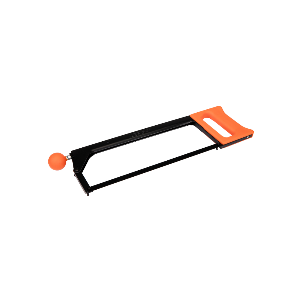 Σιδηροπρίονο με ελαφρύ ατσάλινο πλαίσιο. Λεπτή λάμα κατασκευασμένη από ειδικό χάλυβα και στρογγυλή πλαστική χειρολαβή για άνετο κράτημα.