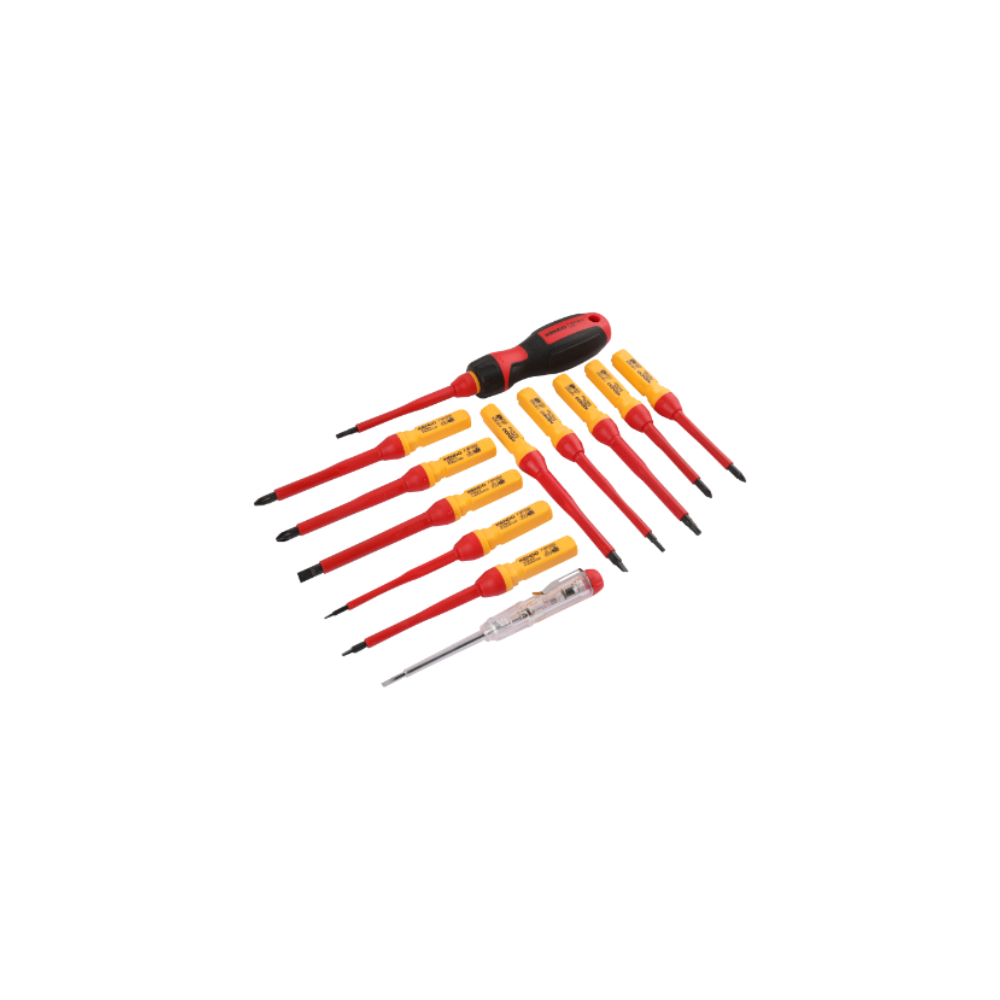 Σετ κατσαβίδι VDE ρυθμιζόμενης ροπής, με εναλλάξιμες μύτες και ενσωματωμένη προστασία μόνωσης.