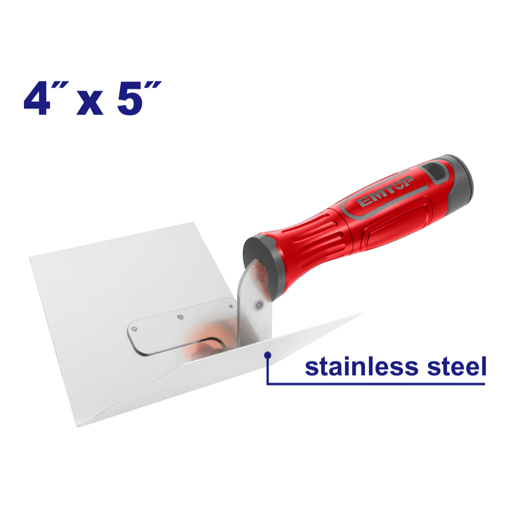 "EMTOP σπάτουλα για εσωτερικές γωνίες4"" * 5"". Λάμα από ανοξείδωτο ατσάλι που εμποδίζει την σκουριά και δίνει αντοχή.