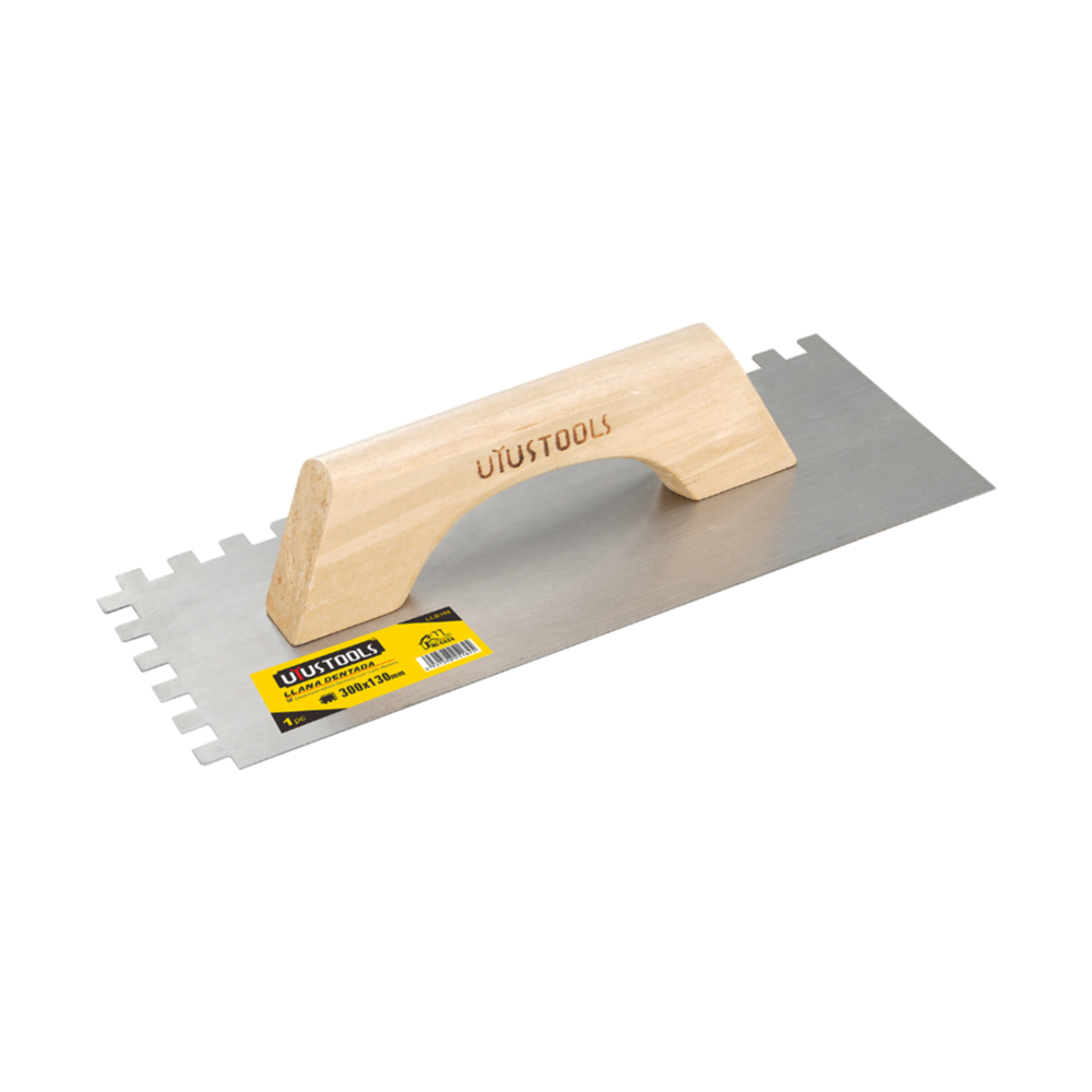 Σπάτουλα πλακιδίων οδοντωτή ιδανική για επαγγελματίες. Η λάμα είναι κατασκευασμένη από ειδικής επεξεργασίας χάλυβα για την αποφυγή της οξείδωσης. Διαθέτει εργονομική λαβή από σκληρό ξύλο για άνετο κράτημα κατά τη χρήση. Κατάλληλη για κόλλες, σοβατίσματα, στοκαρίσματα.