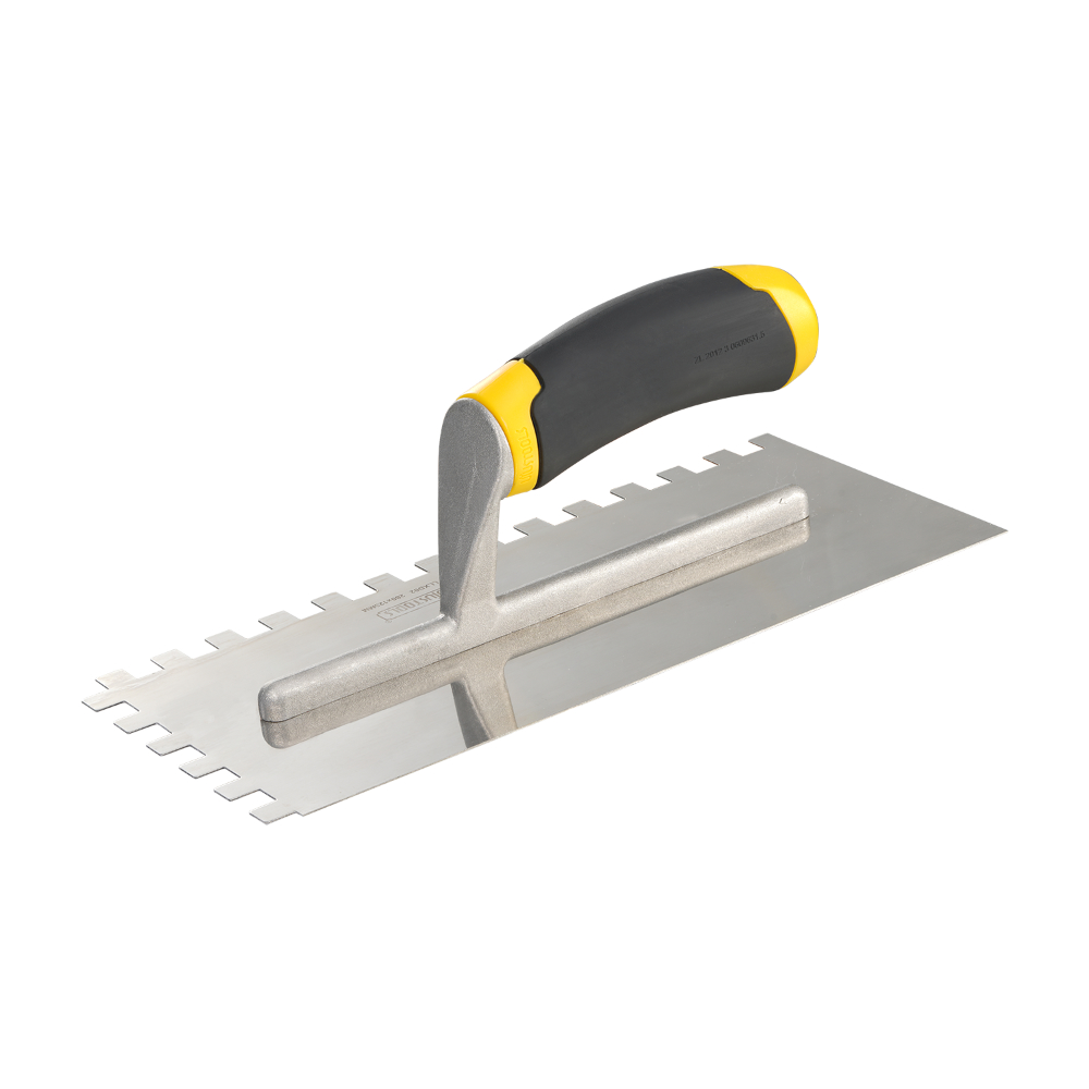 Σπάτουλα πλακιδίων ιδανική για επαγγελματίες. Η λάμα είναι κατασκευασμένη από ειδικής επεξεργασίας χάλυβα για την αποφυγή της οξείδωσης. Διαθέτει εργονομική λαβή από σκληρό ξύλο για άνετο κράτημα κατά τη χρήση. Κατάλληλη για κόλλες, σοβατίσματα, στοκαρίσματα.