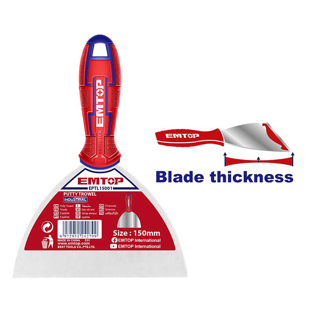 EMTOP σπάτουλα 150MM με λάμα κατασκευασμένη από ανοξείδωτο ατσάλι, υλικό που αποτρέπει την σκουριά και επιτρέπει τις υψηλές θερμοκρασίες.