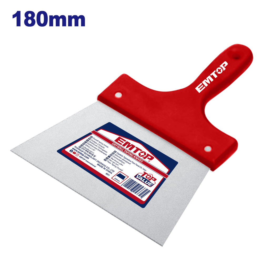 "EMTOP σπάτουλα γυψοσανίδας ιδανική για επαγγελματίες. Η λάμα είναι κατασκευασμένη από ειδικής επεξεργασίας χάλυβα για την αποφυγή της οξείδωσης.