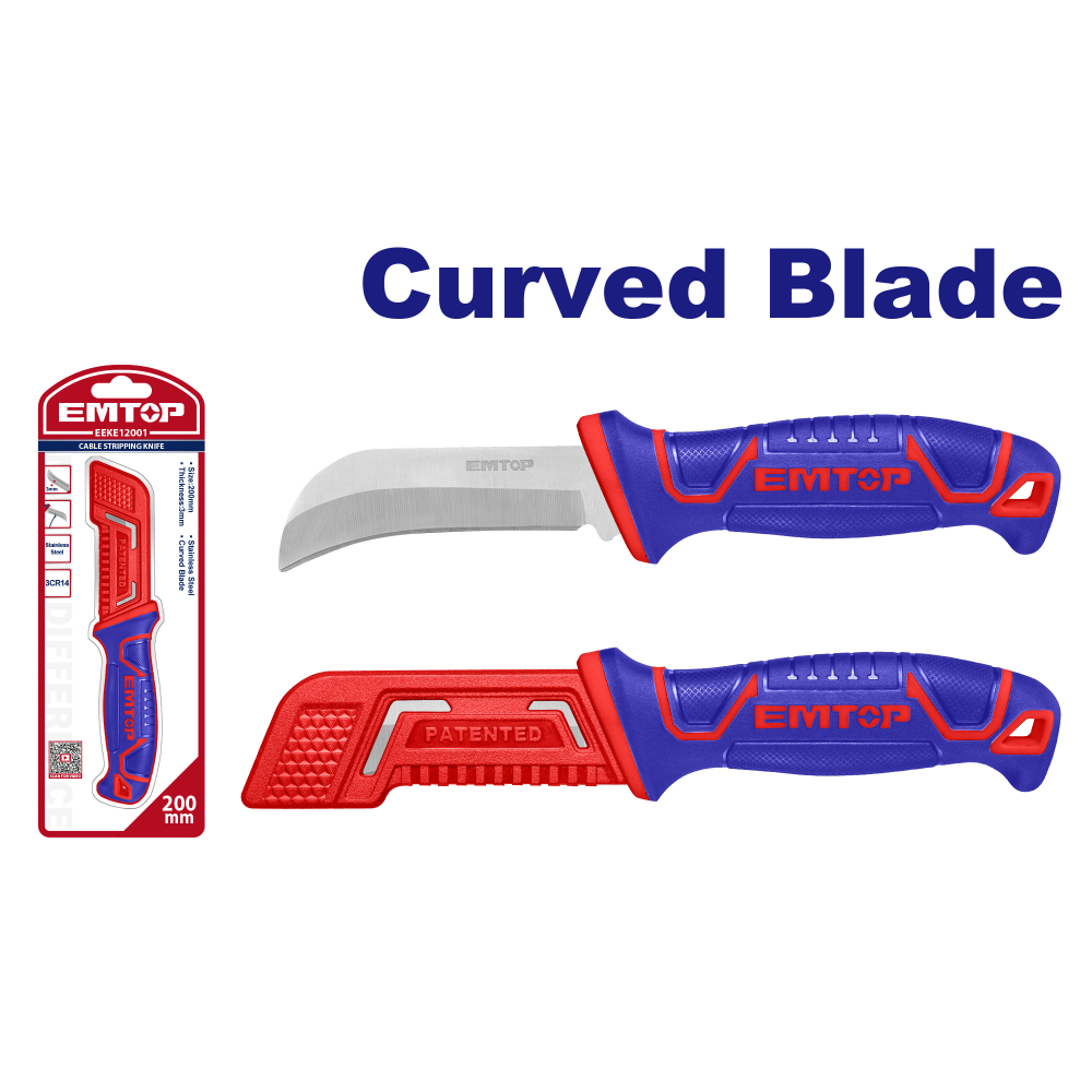 EMTOP μαχαίρι απογύμνωσης καλωδίων με κυρτή λεπίδα και μήκος 2000mm, κατάλληλο για την αφαίρεση της εξωτερικής μόνωσης καλωδίων ρεύματος.
