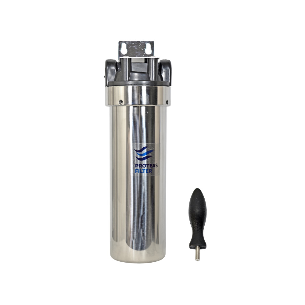 Η μονή μεταλλική φιλτροθήκη τριών μερών είναι κατάλληλη για εγκατάσταση στην κεντρική παροχή του νερού αλλά και κάτω από τον πάγκο της κουζίνας