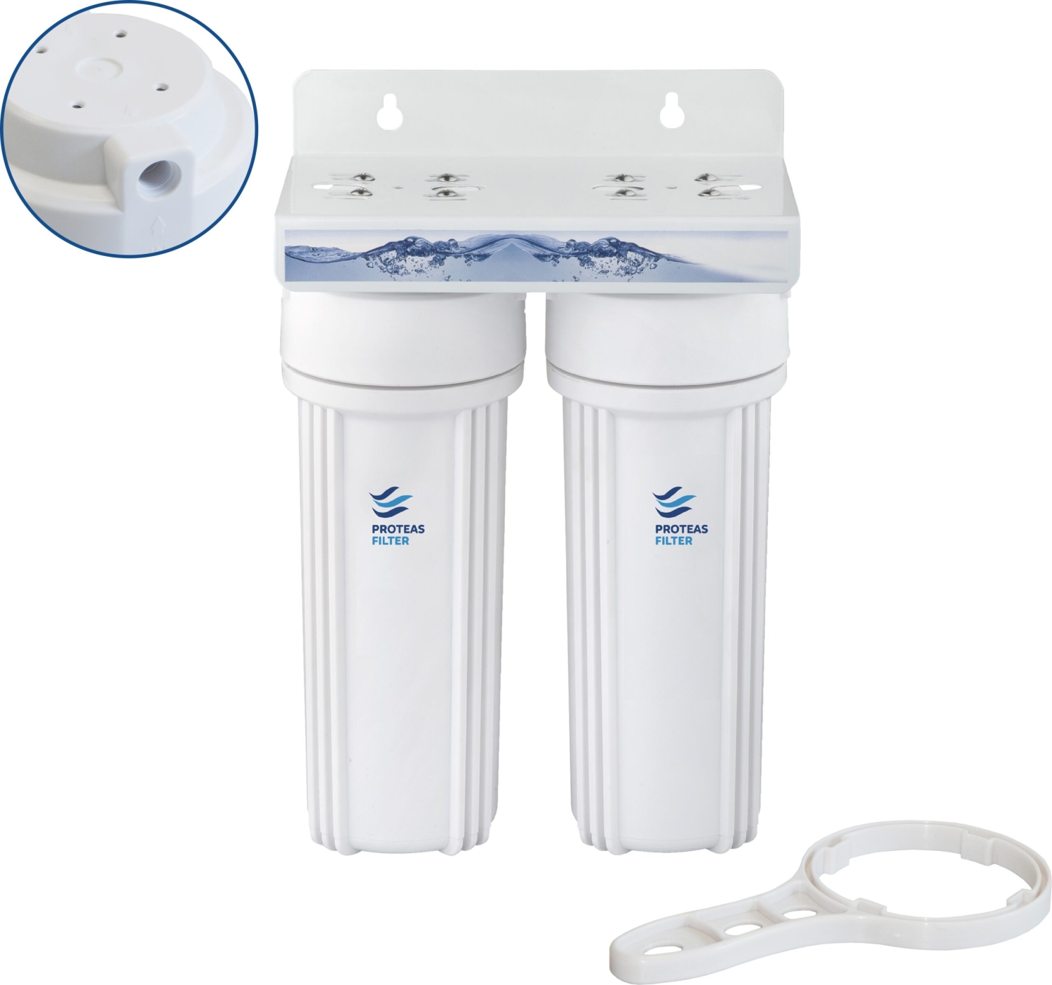 Διπλή φιλτροθήκη δύο μερών λευκή πλαστική 10″ - 1/4″ .
