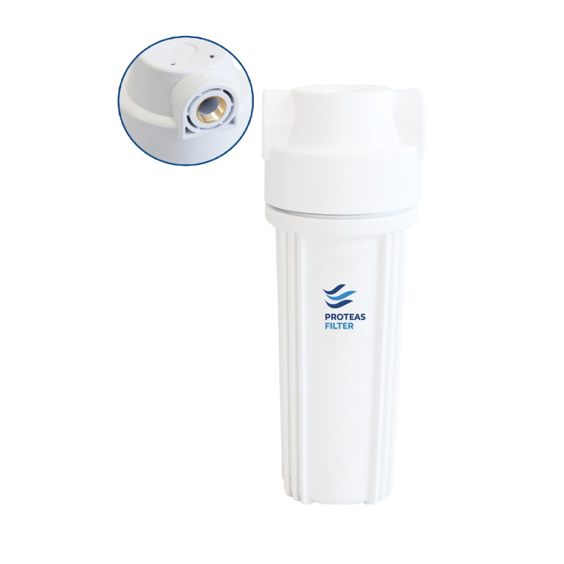 Μονή φιλτροθήκη δύο μερών λευκή πλαστική 10″ - 1/2″ με ορειχάλκινο σπείρωμα .