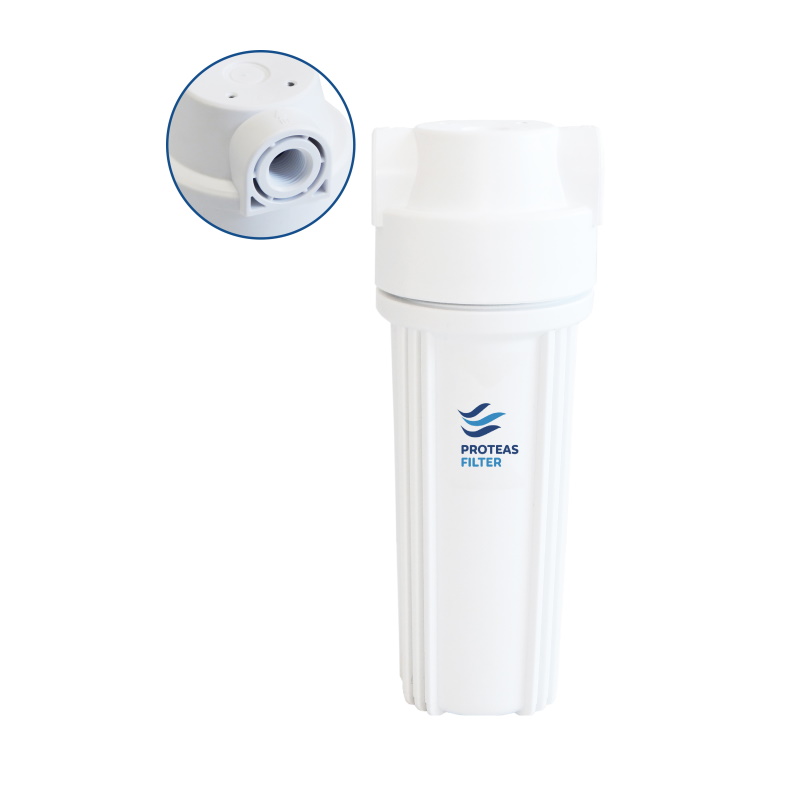 Μονή φιλτροθήκη δύο μερών λευκή πλαστική 10″ - 1/2″ - σκέτη.