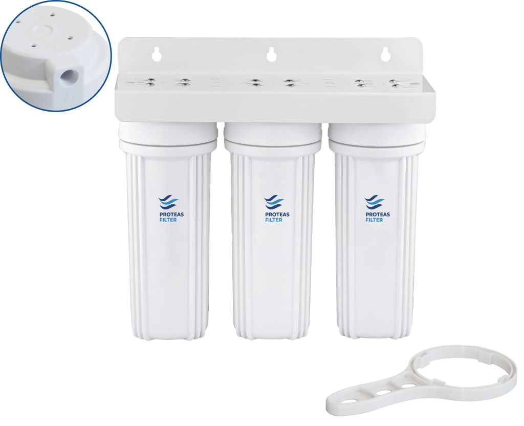 Τριπλή φιλτροθήκη δύο μερών λευκή πλαστική 10″ - 1/4″.