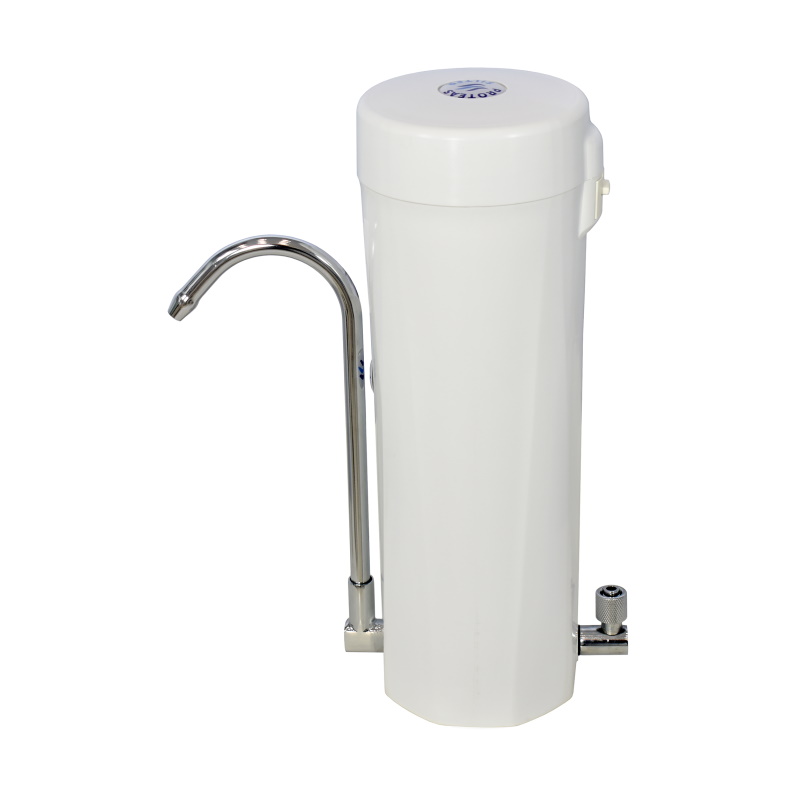 Το φίλτρο άνω πάγκου Proton κατασκευάζεται στην Ελλάδα από πολυπροπυλένιο υψηλής ποιότητας, πιστοποιημένο για πόσιμο νερό. Είναι ένα καινοτόμο προϊόν καταχωρημένο στο Γραφείο Διανοητικής Ιδιοκτησίας της Ευρωπαϊκής Ένωσης (EUIPO). Η αντικατάσταση του φίλτρου γίνεται σε μόλις 30\". Σε αυτό βοηθά το κλιπ ασφαλείας που έχει στο επάνω μέρος και το εύκολο άνοιγμα μισής στροφής.