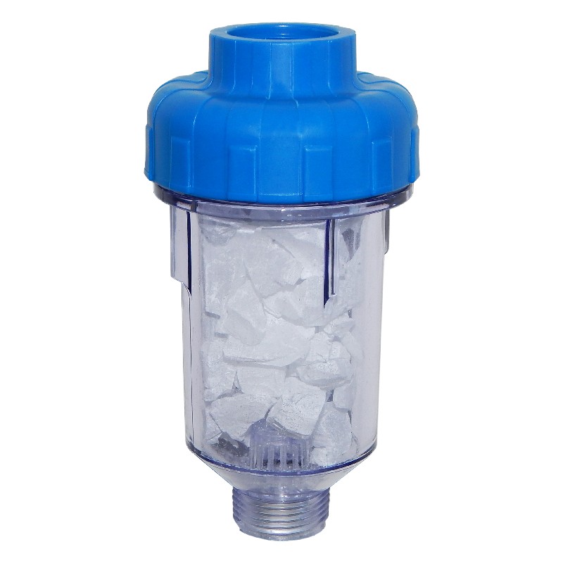 Το φίλτρο πλυντηρίου είναι ιδανικό για τοποθέτηση στην παροχή νερού του πλυντηρίου ρούχων ή πιάτων όπου χρειάζεται μείωση της σκληρότητας του νερού. Το υλικό που χρησιμοποιεί το φίλτρο πλυντηρίου είναι πολυφωσφορικοί κρύσταλλοι. Προστατεύει το πλυντήριο ρούχων και πιάτων από την συσσώρευση αλάτων και αυξάνει την αποτελεσματικότητα των απορρυπαντικών κατά 30%. Είναι επαναχρησιμοποιήσιμο, απλά ξεβιδώνεται και γεμίζεται ξανά με πολυφωσφορικούς κρυστάλλους. Το φίλτρο συνδέεται απευθείας στην παροχή κρύου νερού του πλυντηρίου. Δεν απαιτούνται τεχνικές γνώσεις για την εγκατάστασή του.
