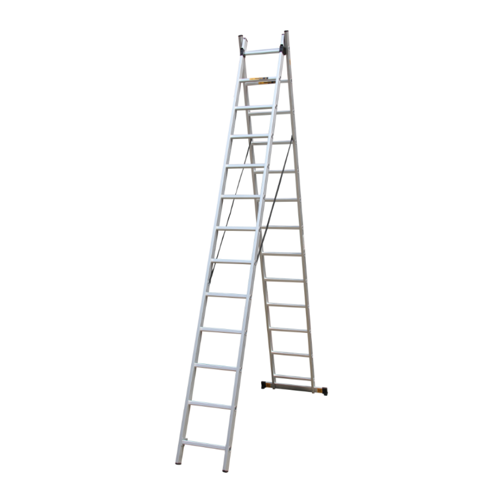 Επαγγελματική σκάλα αλουμινίου επεκτεινόμενη 2 επιπέδων. Απόσταση ανά σκαλοπάτι: 28cm. Μέγιστο βάρος φορτίου: 150Kg