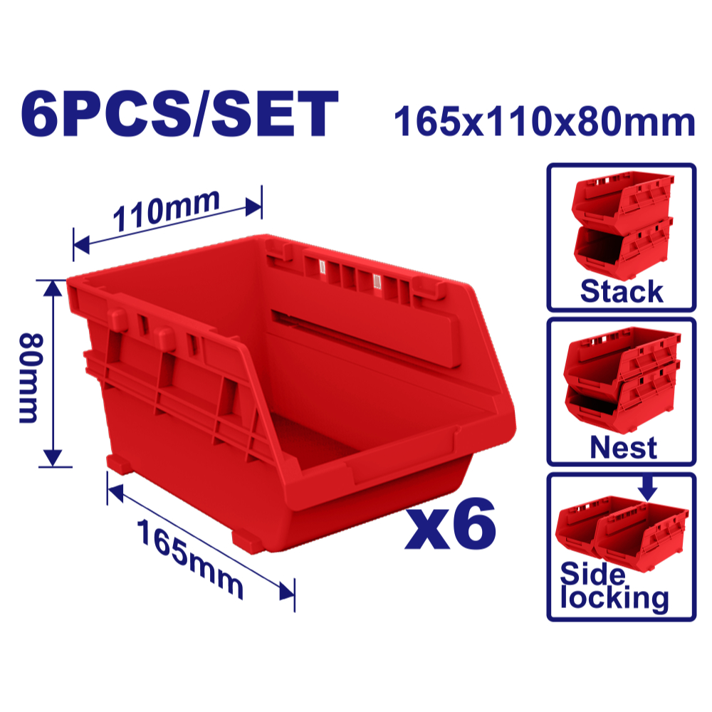 EMTOP σετ 6 τεμάχια σκαφάκια οργάνωσης εργαλείων και μικροαντικειμένων, είναι κατασκευασμένα από πολυπροπυλένιο ανθεκτικό σε διάβρωση και κρούσεις. Χρησιμοποιούνται μόνα τους ή σε στοίβα το ένα πάνω στο άλλο. Μπορούν να τοποθετηθούν ακόμα και σε διάτρητες πλάτες ή ντουλάπες, αυξάνοντας την οργάνωση και την χωρητικότητα. Έχουν μεγάλο άνοιγμα στην μπροστινή πλευρά, επιτρέποντας εύκολη πρόσβαση στο περιεχόμενο. Ιδανικά για το σπίτι αλλά και για επαγγελματικούς χώρους, όπως εργαστήρια, αποθήκες και γενικότερα χώρους όπου απαιτείται η προσωρινή, ή μακροπρόθεσμη αρχειοθέτηση αντικειμένων.