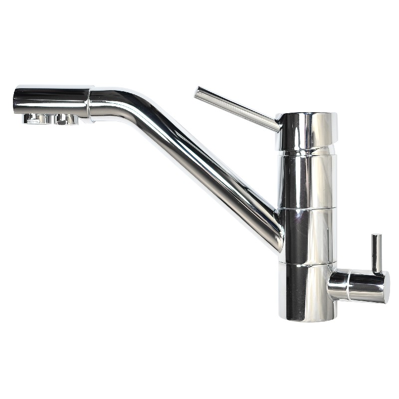 Τρίοδη βρύση κουζίνας χρωμέ χαμηλή για κρύο / ζεστό και φιλτραρισμένο νερό.