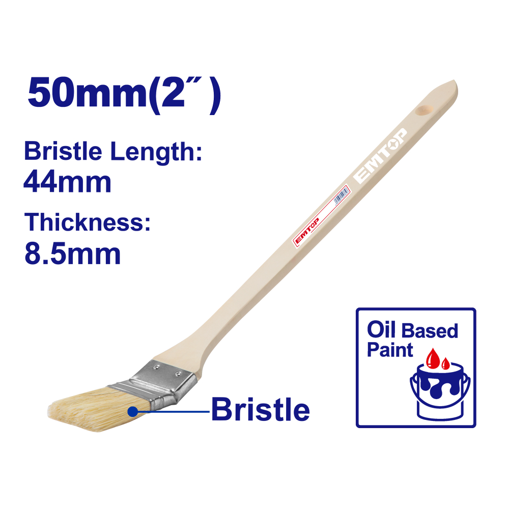 "EMTOP κυρτό πινέλο με συνθετική τρίχα που προσφέρει λείο και ομοιόμορφο φινίρισμα. Διαθέτει πολύ λεπτή ξύλινη λαβή για μεγάλη εμβέλεια και ευελιξία μήκους.