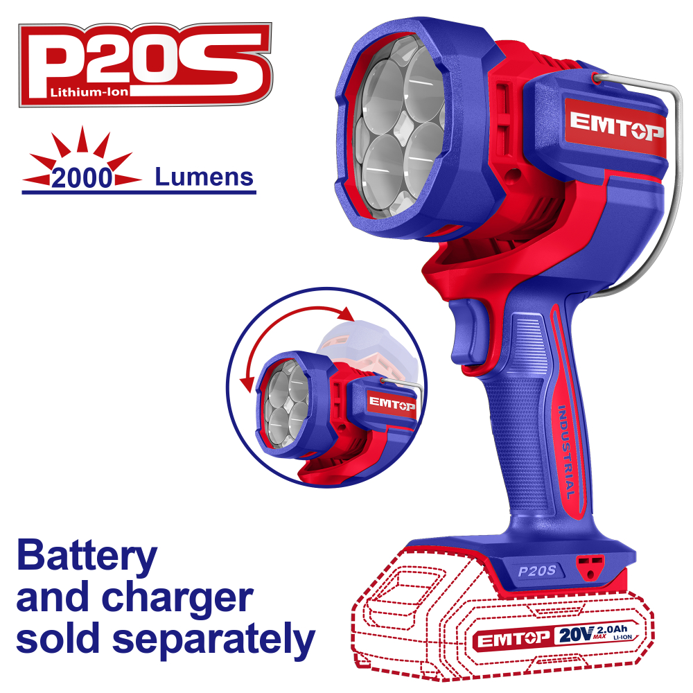 Εκπέμποντας περίπου 2000 lumens με διακύμανση ±10%, η λάμπα εργασίας προσφέρει έντονο και σταθερό φωτισμό για βελτίωση της ορατότητας στο χώρο εργασίας σας.