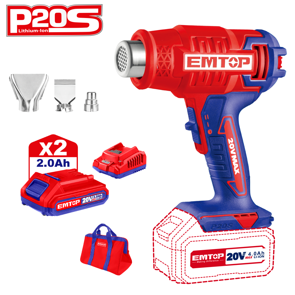 EMTOP ΠΙΣΤΟΛΙ ΘΕΡΜΟΥ ΑΕΡΑ ΜΠΑΤΑΡΙΑΣ 20V/2x2Ah EHGN20021SE