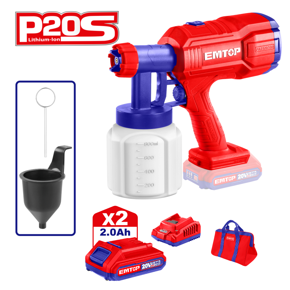 EMTOP ΠΙΣΤΟΛΙ ΒΑΦΗΣ ΜΠΑΤΑΡΙΑΣ 20V/2x2Ah ELSG2002SE