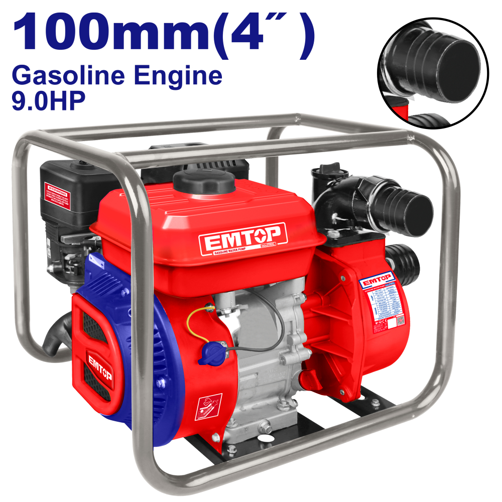 "Emtop επαγγελματική αντλία νερού επιφάνειας βενζινοκίνητη. Προσφέρει αξιόπιστη άντληση για κήπους και μικρές αρδεύσεις,