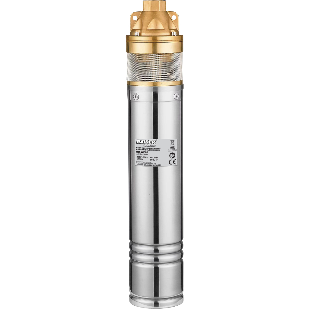 Η αντλία γεωτρήσεων ομβρίων της Raider RD-WP69 1500W 1" 40L/min 99m 070176 διαθέτει ισχύ 1500W και τάση 230V. Αποτελεί ιδανική επιλογή για αξιοπιστία και αποτελεσματικότητα στις εργασίες σας. Έχει στόμιο 1" (ίντσα) και μανομετρικό 99m. Ο μέγιστος ρυθμός παροχής είναι 40L/min (2400l/h), εξασφαλίζοντας σταθερή ροή νερού.
