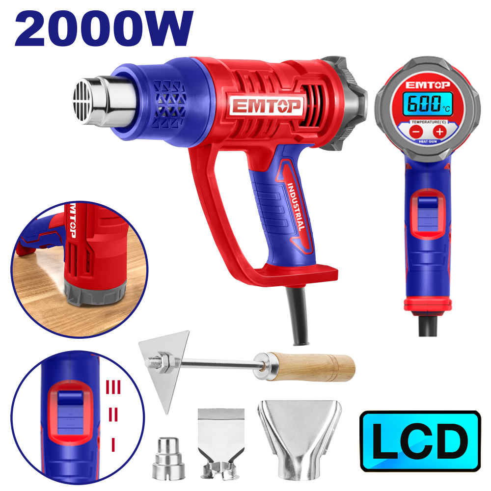 EMTOP ΠΙΣΤΟΛΙ ΘΕΡΜΟΥ ΑΕΡΑ 2000W ΜΕ ΡΥΘΜΙΣΗ ΘΕΡΜΟΚΡΑΣΙΑΣ ΕΩΣ 600°C ΚΑΙ LCD ΟΘΟΝΗ EHGN20056