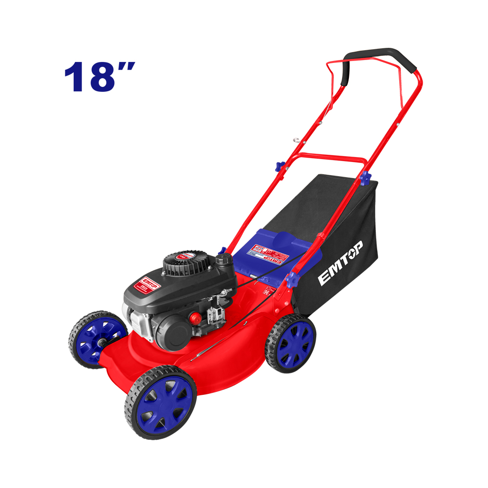 Μηχανή γκαζόν με κινητήρα βενζίνης της εταιρίας EMTOP. Φέρει βενζινοκινητήρα, ο οποίος περιστρέφει τα μαχαίρια κοπής.