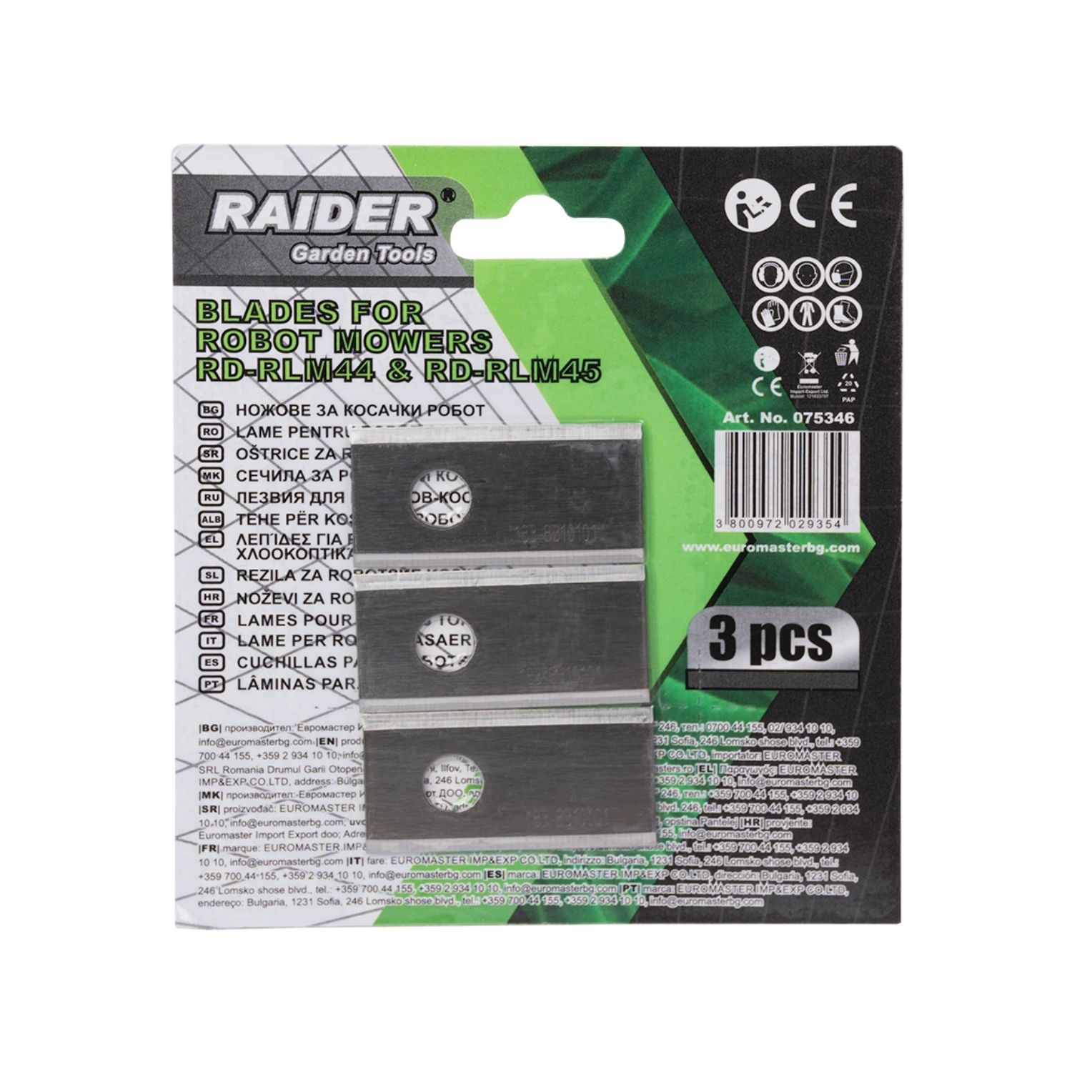 RAIDER Μηχανής γκαζόν μαχαίρι Σετ:3τεμ. για RD-RLM44 & RLM45 075346