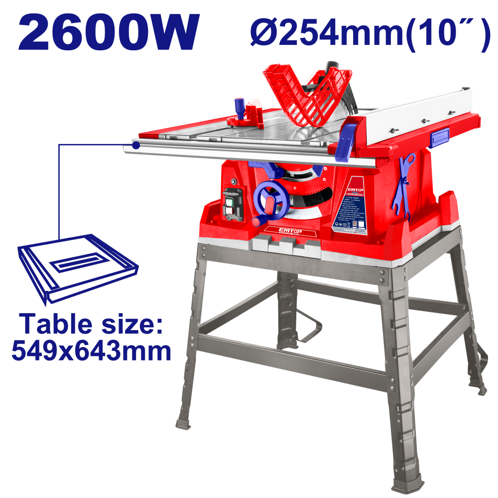 Ισχύς: Λειτουργώντας στα 2600W, αυτό το παγκοπρίονο προσφέρει ισχυρή ισχύ για μια ποικιλία εφαρμογών κοπής.