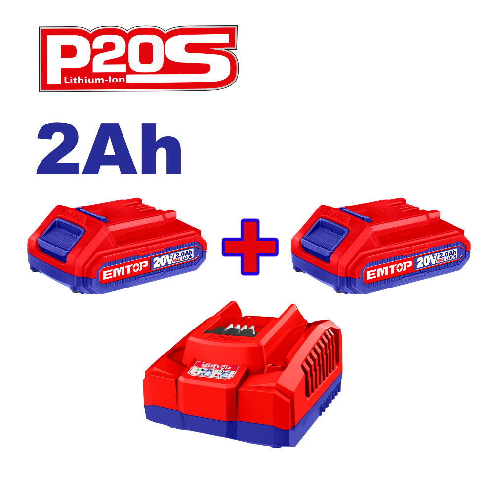 EMTOP ΠΑΚΕΤΟ ΠΡΟΣΦΟΡΑΣ 2ΤΜΧ 20V, 2.0Ah ΜΠΑΤΑΡΙΑ ΛΙΘΙΟΥ ΜΕ ΤΑΧΥΦΟΡΤΙΣΤΗ ELBCPK1222