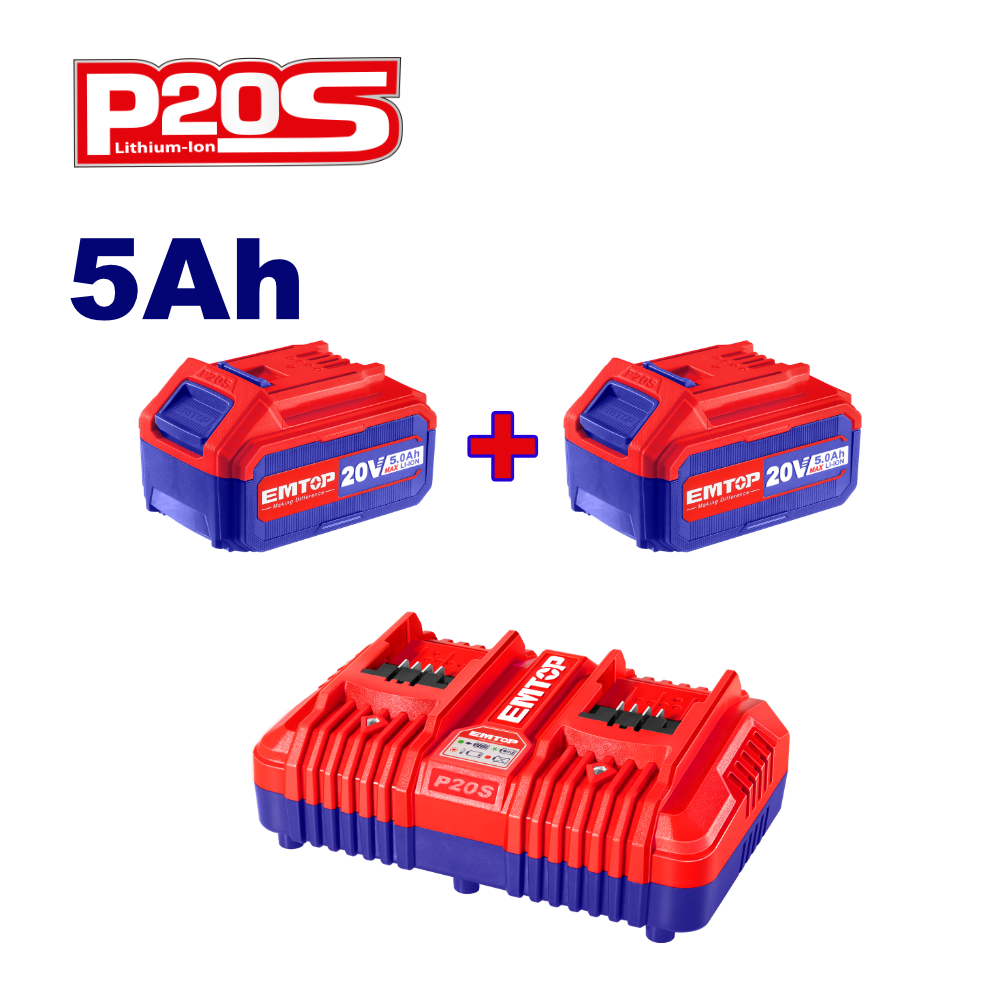 EMTOP ΠΑΚΕΤΟ ΠΡΟΣΦΟΡΑΣ 2ΤΜΧ 20V, 5.0Ah ΜΠΑΤΑΡΙΑ ΛΙΘΙΟΥ ΜΕ ΤΑΧΥΦΟΡΤΙΣΤΗ 2 ΘΥΡΩΝ ELBCPK2425