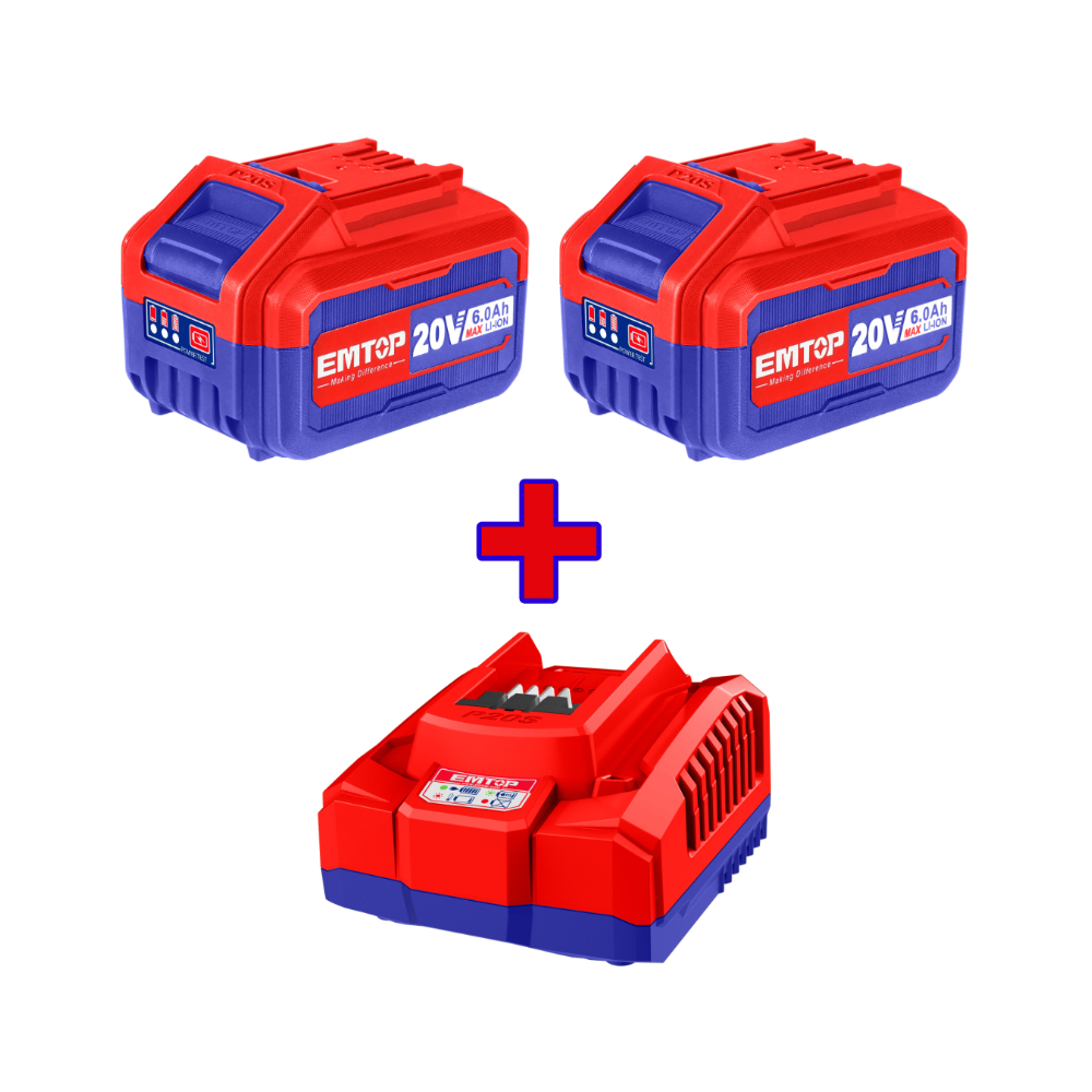 Emtop πακέτο προσφοράς 2 τεμάχια μπαταρίες 6Ah 20V και φορτιστής.