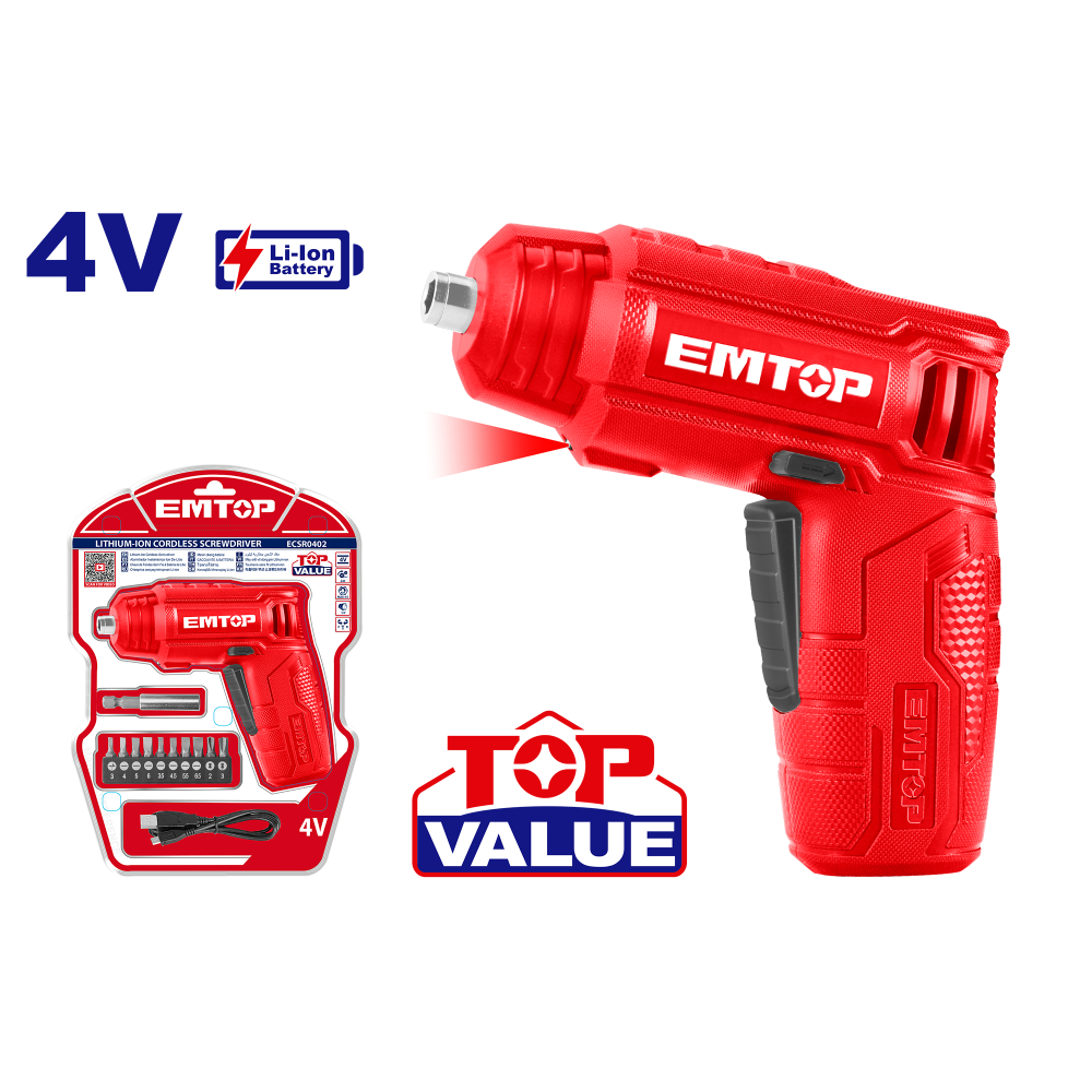Το κατσαβίδι μπαταρίας EMTOP έχει σχεδιαστεί για να είναι συμπαγές, ελαφρύ και εύκολο στη χρήση, καθιστώντας το ιδανικό εργαλείο για καθημερινές οικιακές εργασίες και έργα DIY.