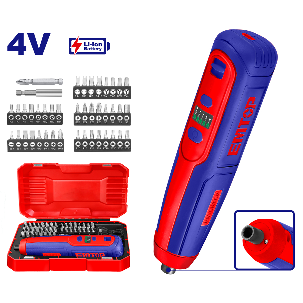 Το κατσαβίδι μπαταρίας EMTOP είναι ένα ευέλικτο και αποτελεσματικό εργαλείο που έχει σχεδιαστεί για να απλοποιεί τις εργασίες βιδώματος.